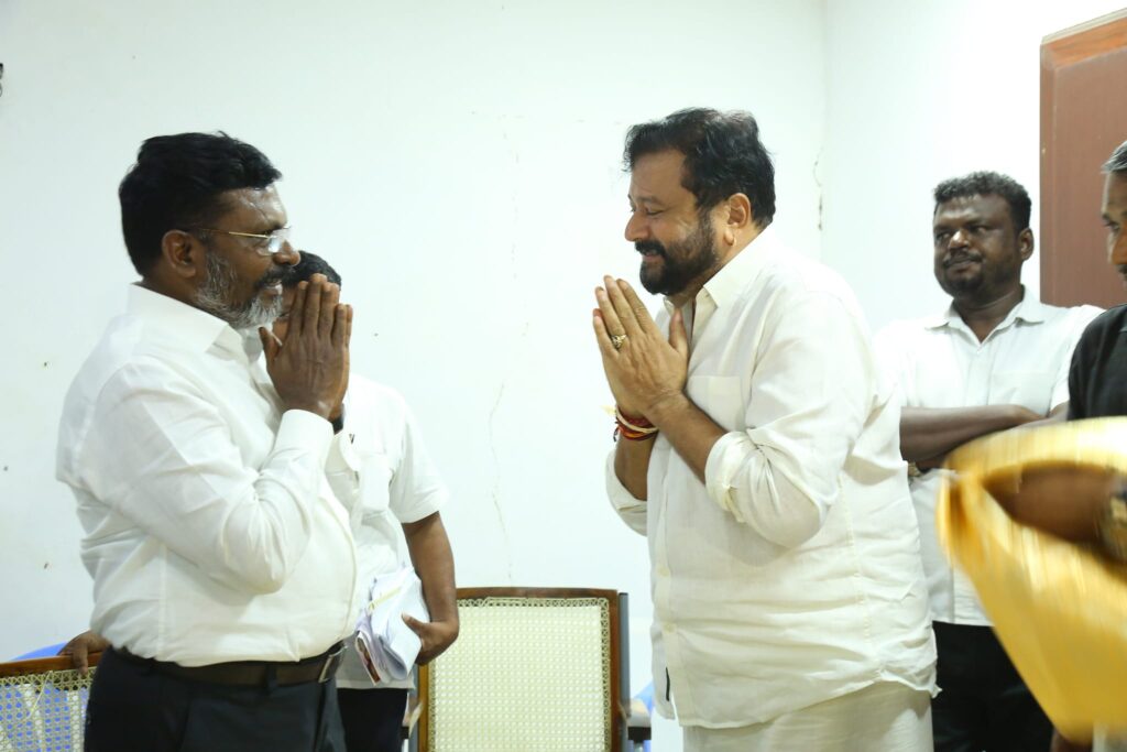 இந்நிலையில் காளிதாஸ் ஜெயராம் திருமணம் நவம்பர் 10-ம் தேதி நடைபெற உள்ள நிலையில், தலைவர் திருமா அவர்களை நேரில் சந்தித்து நடிகர் ஜெயராம் அழைப்பு விடுத்துள்ளார்.
