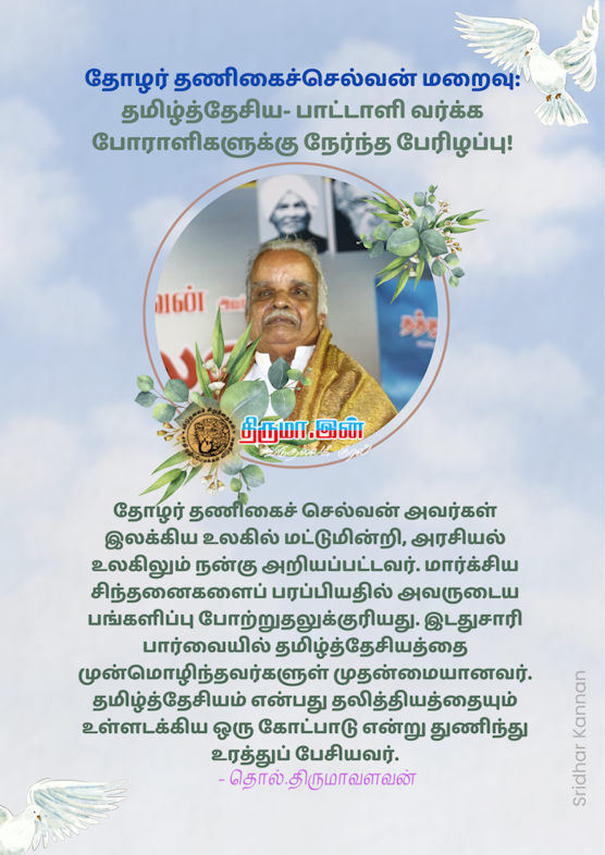 தோழர் தணிகைச்செல்வன் மறைவு: