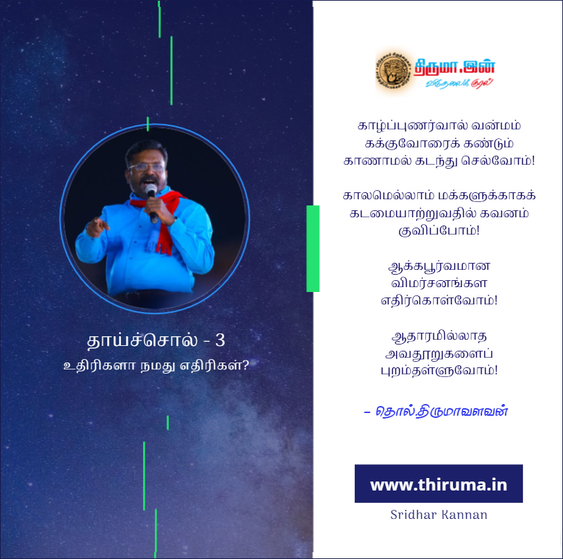 கடந்த முப்பத்தைந்து ஆண்டுகளாகவே நமது களப்பணிகள் மற்றும் வளர்ச்சி நிலைகளுக்கேற்ப, நமக்கு எதிரானவர்கள் விமர்சனங்கள் என்னும் பெயரால் மிகவும் அப்பட்டமான அவதூறுகளைத் தொடர்ந்து பரப்பி வருகின்றனர். அவை, மிகவும் கேடான உள்நோக்கம் கொண்டவை.