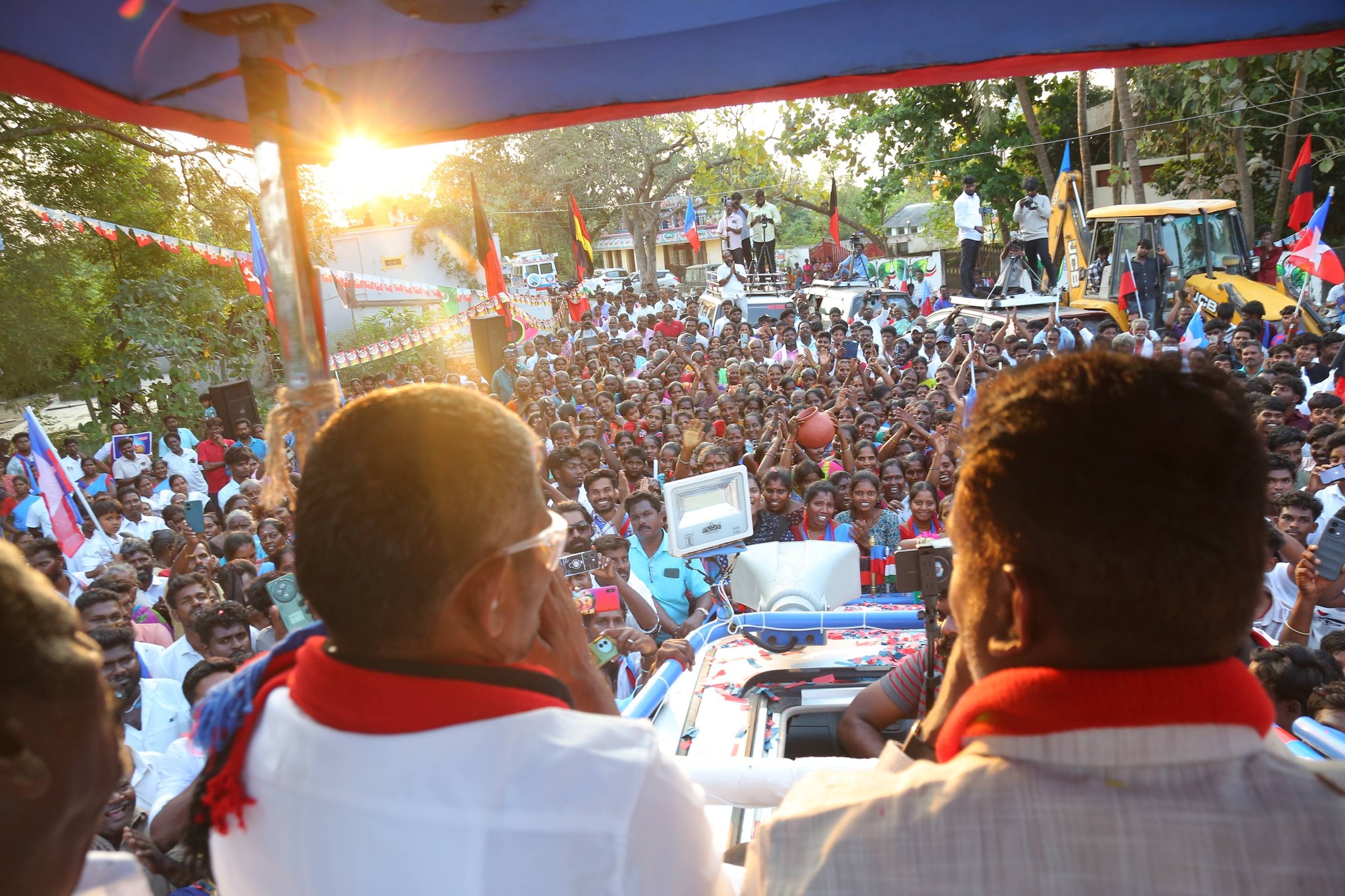 மண்ணின் மைந்தருக்கு ஆதரவு: வேட்பாளர் வன்னி அரசு நீண்டகாலமாக மக்கள் பணியாற்றி வருவதையும், ஒடுக்கப்பட்ட மக்களின் குரலாகச் சட்டமன்றத்தில் ஒலிக்க வேண்டியதன் அவசியத்தையும் திருமாவளவன் சுட்டிக்காட்டினார்.