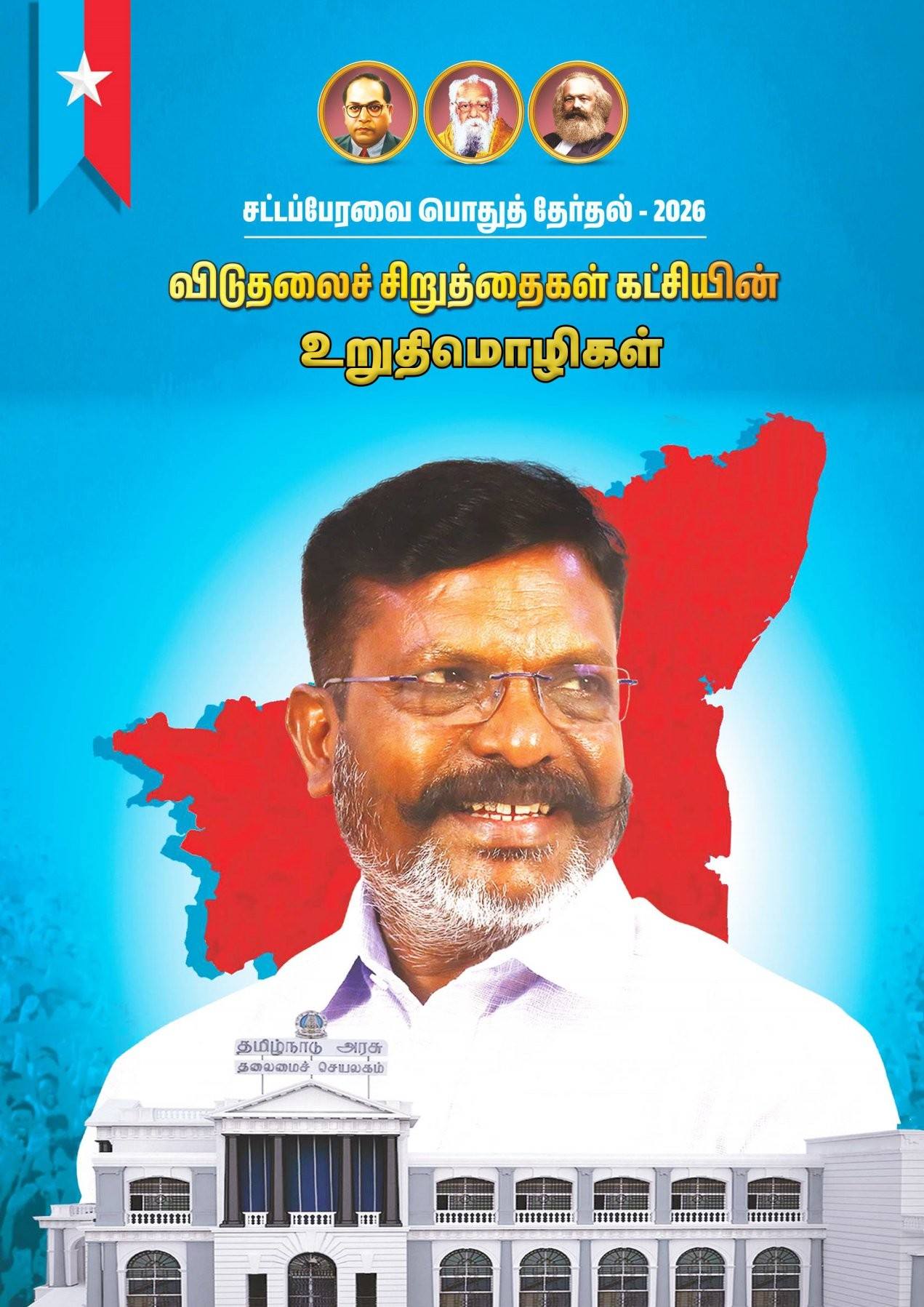 2026ஆம் ஆண்டு நடைபெறவுள்ள தமிழ்நாடு சட்டமன்றப் பொதுத் தேர்தலை முன்னிட்டு, விடுதலைச் சிறுத்தைகள் கட்சி (விசிக) வெளியிட்டுள்ள முக்கிய தேர்தல் உறுதிமொழிகள் மற்றும் கொள்கை நிலைப்பாடுகளின் தொகுப்பு இதோ:
